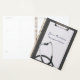 Un design professionnel de classe à usage médical : un porte - bloc en cuir gris avec papier vierge et un stéthoscope. Parfait pour toute entreprise liée à la santé et aux soins de santé comme un bureau médical, un cabinet médical, une clinique ou un hôpital. Pour le personnel hospitalier, les médecins, les infirmières; classe, noble et élégant.