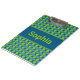This stylish clipboard adds a retro-inspired flair to your office or home. The bold, geometric link pattern in cool blue and green hues instantly upgrades any desk or workstation, keeping you organized in eye-catching fashion. With a sturdy clip to hold your papers firmly in place, this clipboard makes an ideal companion for meetings, classes, or remote work. Bring a touch of vintage-inspired charm to your everyday productivity. This clipboard is perfect for students, professionals, and anyone who wants to add a splash of personality to their workspace. Elevate your note-taking, to-do lists, and document organization with this modern yet nostalgic design that's sure to inspire.