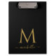 Personalized Modern Elegant Initial Name Template Black Gold Script Typography Name Monogram Clipboard.