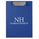 Porte - bloc d'entreprise moderne avec un design bleu simple et minimal avec votre monogramme en caractères gras avec votre nom.