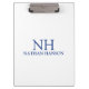 Porte - bloc d'entreprise moderne avec un design simple et minimal bleu et blanc avec votre monogramme en caractères gras avec votre nom.