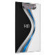 Un design porte - bloc élégant pour le professionnel moderne avec un motif aux courbes métalliques en bleu, argent et gris dans une forme incurvée avec un arrière - plan noir et blanc. Personnalisez l'exemple de texte affiché dans le modèle de conception avec votre monogramme, nom, logo ou autre texte souhaité.