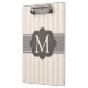 Ivoire chic et élégant et motif rayé beige avec la conception brune au milieu pour votre initiale personnalisée de monogramme.