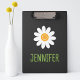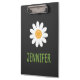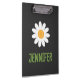 Ce porte - bloc amusant présente une illustration d'une simple marguerite blanche avec un nom personnalisable à l'avant. Le dos est décoré d'un classique tartan gris et noir pour une touche unique. Modifiez le texte pour créer un cadeau unique pour la famille, les amis ou les collègues. Parfait pour une utilisation à domicile ou dans les bureaux d'entreprise.