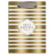 Les élégantes tons dorés modernes rayent le motif sur l'arrière - plan blanc. Nom personnalisable sur le devant et nom de la société sur le dos.