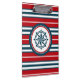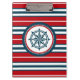 Design nautique avec décoration de boussole en forme ronde sur arrière - plan rayé rouge, bleu et blanc