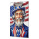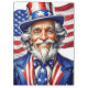 Oncle souriant Sam USA American Icon portant un costume américain et un drapeau américain agitant en arrière - plan
