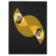 Un design artistique abstrait amusant des yeux d'une chouette dans le noir avec sa tête tordue latéralement.