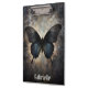 Un beau papillon noir et bleu nuit sur un arrière - plan grunge texturé crée un magnifique porte - bloc de style gothique. Personnalisez avec votre nom en bas. Le dos est noir.