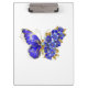 Bijoux, bleu, saphir, papillon aux fleurs pétillantes avec aile décorée de bleu, fleurs précieuses avec feuilles d'or sur arrière - plan blanc.