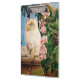 Un chat persan couleur crème avec des roses roses sales sur le mur à côté du chat. A proximité se trouve un beau dryad vert fae de lore celtique