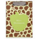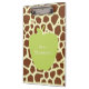 Un porte - bloc pour des professeurs comportant un motif d'impression de girafe. L'avant comporte une illustration verte de pomme. Personnalisez avec votre nom sur la pomme.