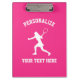 Accessoire d'entraîneur de tennis femme porte - bloc rose sur mesure. Ajoutez votre propre nom, nom de l'équipe ou nom du club. idée cadeau cool pour entraîneur de lycée, maman, ligue pour enfants, équipe pour filles, etc. Logo silhouette de joueur de tennis féminin avec modèle de typographie sportive. Carte clipart arrière - plan couleur rose néon ou personnalisée. Impression recto verso.