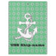 Ancre et gouvernails décorent l'avant et l'arrière du tableau. l'avant est recouvert de plusieurs gouvernes blanches sur un arrière - plan vert moyen. Sur le dos, une grande ancre blanche est centrée avec le texte ci-dessous (personnalisez avec le nom/le texte de votre choix de bateau).