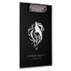 Logo moderne et élégant de silhouette féminine blanche, porte - bloc personnalisé. Modèle comporte deux lignes pour votre texte personnalisé. Les couleurs Arrière - plans, en noir classique, peuvent être customisées.