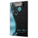 Motif moderne et élégant à floral noir damassé et tourbillons bleus avec des fleurs délicates. monogramme facultatif