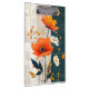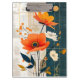 Les pavots peints en orange se combinent avec des fleurs blanches et des baies oranges sur un arrière - plan mixte dans le bleu foncé-gris et l'amande-tan. Très beau design moderne et abstrait.