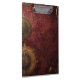 A richly detailed scene of golden instruments, mystical diagrams, and arcane symbols — set against a deep crimson backdrop.
