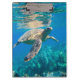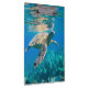 Photo sous-marine d'une tortue de mer nageant dans une eau cristalline juste en dessous de la surface.