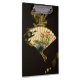 Peinture d'un ventilateur oriental recouvert d'un tapis au design floral. L'arrière - plan noir permet aux couleurs du ventilateur de sortir de l'impression. Accrochez-le sur votre mur et amusez-vous !