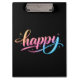 A cheerful and modern "happy" design featuring a beautiful flowing script with a vibrant pastel gradient of orange, pink, and blue. Decorative sparkles and dots add a touch of magic and positivity to this clean, uplifting artwork.
