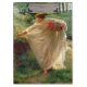 Ce dessin présente une peinture de l'artiste anglais Sir Edward John Poynter (1836-1919), qui a été président de la Royal Academy of Arts. Il montre une jolie jeune femme qui porte une robe diaphane couleur crème faite de tissu fin. Les contours et les courbes de son beau corps peuvent être vus à travers les vêtements. La femme marche dans une idylle rurale en ramassant des fleurs rouges qui poussent à flanc de colline. Elle a un panier dans une main qu'elle utilise pour rassembler les fleurs colorées vives qu'elle a récoltées. C'est une représentation incroyablement impressionnante de la beauté féminine et des plaisirs de la nature. Il y a de l'herbe qui pousse sur les collines et les remplissages qui entourent la jeune femme, et il y a un amas d'arbres qui se dessinent à l'horizon. L'oeuvre originale a été peinte par Edward Poynter en 1880.