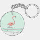 Design élégant avec une touche rétro avec un flamant dans l'eau contre un arrière - plan vert pâle. Un design personnalisable pour personnaliser avec votre propre texte, images et idées. Image d'art numérique originale créée par QuirkyChic.