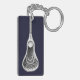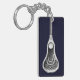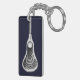Porte - clé de crosse avec un bâton de lessive unique et illustration de balle sur un arrière - plan bleu marine.