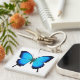 La conception originale de beaux-arts d'un papillon bleu de Papilio Ulysse par l'artiste Carolyn McFann du studio de ronronnement de deux chats a imprimé sur une qualité et un porte - clé acrylique personnalisable pour tous ce qui aiment des papillons de machaon.
