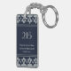 Hôtel élégant, motel, porte - clé de pièce de station de vacances fait dans bleu-foncé, avec des graphiques d'une bande argentée de style de tone fleur di lis, le long du dessus et du bas. Personnalisez le texte gris-clair, sur l'avant et le dos, pour adapter aux besoins de votre station de vacances.
