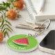 Icône tranche de pastèque rouge mûre. Couleur arrière - plan personnalisée. Texte personnalisé des deux côtés.