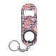 ouvre-bouteille porte - clé avec un motif de coraux qui se chevauchent dans le violet foncé, le rouge orange et la pêche.