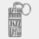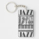 Porte - clé orienté de jazz noir et blanc. Les illustrations originales ont été faites en charbon de bois. Cette conception a une série d'instruments de musique comprenant une clarinette, basse droite, vieux microphone, trompette, piano, et un pilon. Grande idée de cadeau pour le mélomane, le professeur, ou l'étudiant.