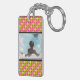 Porte - clé photo Raspberry Polka Dot - L'avant a pois rayé au milieu avec un arrière - plan de framboise. Le motif se poursuit sur le dos, et vous ajoutez votre propre photo.