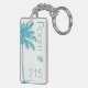 L'hôtel orienté tropical élégant, porte - clé d'auberge, avec des graphiques d'un aqua a coloré le palmier, sur un fond blanc, des deux côtés. Personnalisez le texte d'aqua pour adapter à vos besoins.