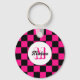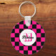 à damiers carré chaud rose noir rétro Monogram porte - clé. Un cadeau d'accessoires pour elle. Cool retro à damiers motif carré géométrique . Vérificateur moderne vintage carrelage noir rose. Personnalisez avec votre initiale et votre nom personnalisés.