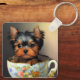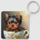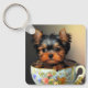 Un porte - clé adorable présente AI rendu la peinture numérique d'un chiot Yorkie (Yorkshire Terrier) dans une teacup fleurie fantaisie.