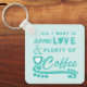 Porte - clé double face, l'idée de cadeau porte-clés pour un amateur de café. Ajoutez des initiales à l'arrière. Amour et beaucoup de café. Monnaie foncée et pâle aux coeurs d'amour.