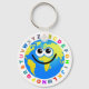 Joyeux personnage mondial entouré de lettres de l'alphabet.