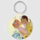 Artiste : Bernard D'Andrea | Femme aux cheveux rouges embrassant homme derrière des tournesols avec une chaise bleue et un chat.