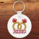 Anneaux de mariage tricotés entrelacés mignons avec des câlins XOXO rose sur un porte-clés rond, parfait pour la romance en déplacement