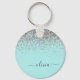 Aqua Blue - Turquoise et Silver Sparkle Parties scintillant Script Monogramme Nom Keychains (Porte - clé). Cela rend le cadeau parfait pour 16 ans, mariage, douche nuptiale, anniversaire, baby shower ou bachelorette pour quelqu'un qui aime le luxe glam et les styles chic.