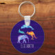 Un porte - clé personnalisé à l'aquarelle numérique représentant un dauphin bleu sautant, un éléphant violet, un kangourou orange et un lapin vert aqua. Définir sur un arrière - plan abstrait violet foncé
