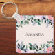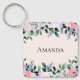 Une porte - clé avec un joli design floral fait d'aquarelles. Fleurs de jardin roses, violettes et vertes.