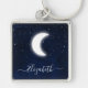 Aquarelle bleu nuit ciel avec les étoiles et le porte - clé de la lune. Votre nom dans un script à la mode.