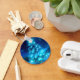 Un porte - clé avec un sapin de Noël décoré de lumières éclatantes bleu-électrique. Étincelant et scintillant de joie festive.