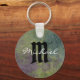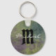 Arrière - plan original abstrait dans les tons violet, bleu et vert font le fond parfait pour votre nom et monogramme initial sur ce porte - clé métallique rond.
