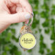 Montrez votre côté bouquin et l'amour pour les livres Jane Austen avec ce porte - clé bouquin avec le mot "Austenite" en écriture stylisée avec graphique floral contre un arrière - plan jaune. *Veuillez noter que le filigrane Zazzle qui apparaît dans l'aperçu du zoom n'apparaîtra PAS sur le produit imprimé final. © Bookish and Wonderful