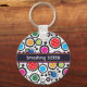 Porte - clé avec des boules de pickleball colorées et des cercles noirs sur arrière - plan blanc. Parfait comme cadeau pour un joueur de pickleball à la mode. Texte personnalisable Bonne tenue et meilleurs voeux pour vos futurs jeux !