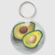 Aquarelle d'un avocat vert frais coupé en deux. Arrière - plan gris et bleu marbré.